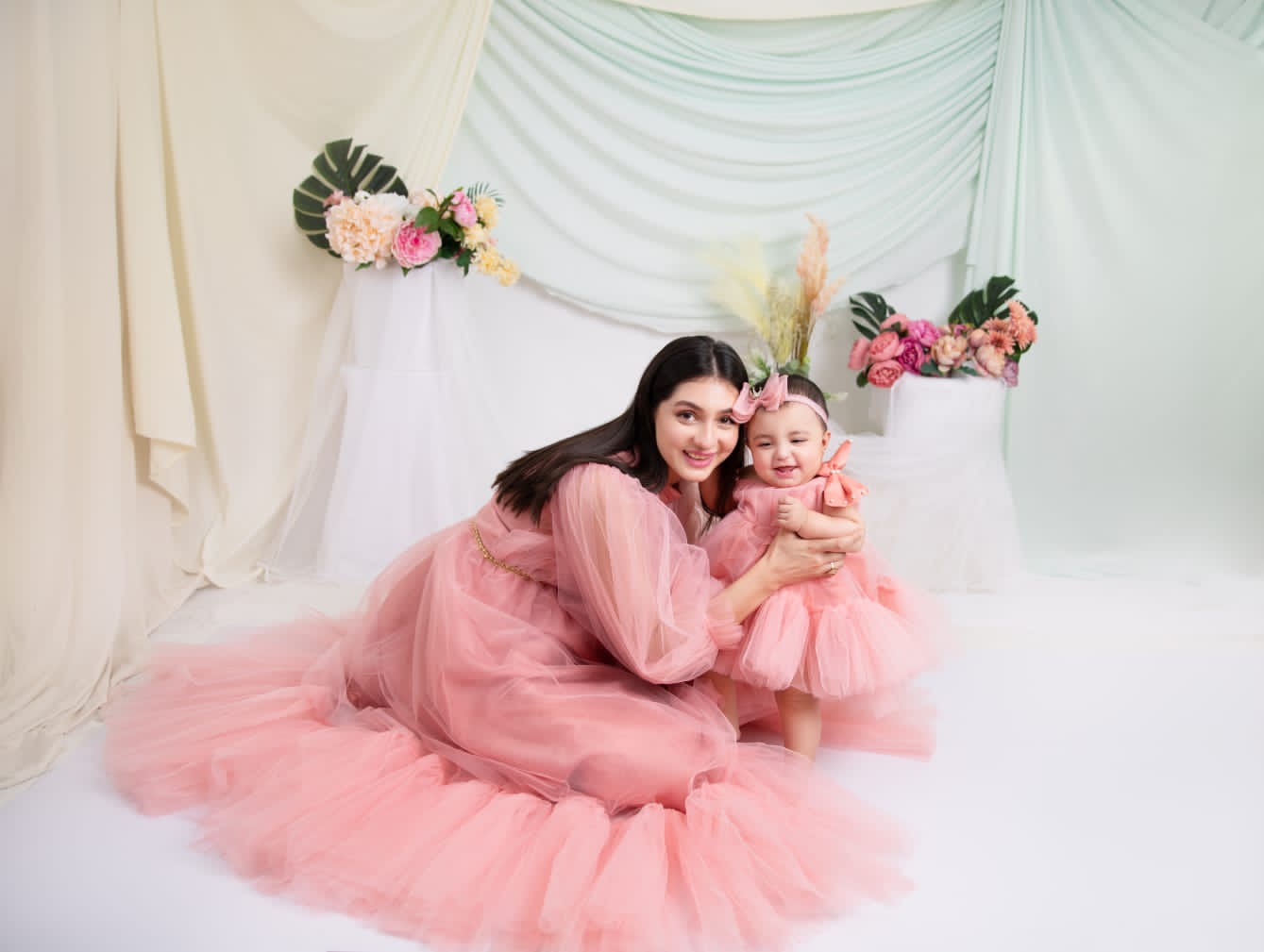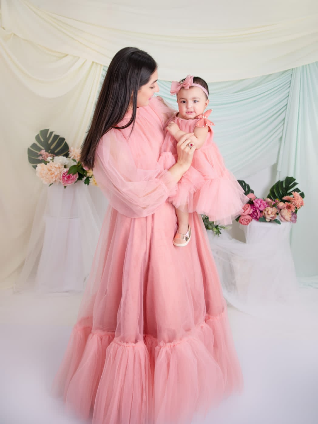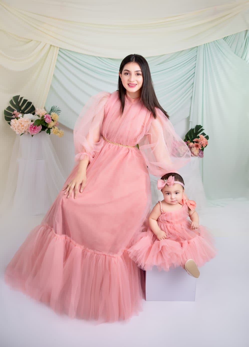 The child's outfit faithfully mirrors the design of the adult dress, showcasing an unwavering commitment to detail. Every stitch and seam has been meticulously executed to ensure that both mother and child radiate absolute perfection on any occasion. This ensemble not only epitomises style but also priorities comfort, promising a delightful experience during those cherished and memorable moments. 🌸✨