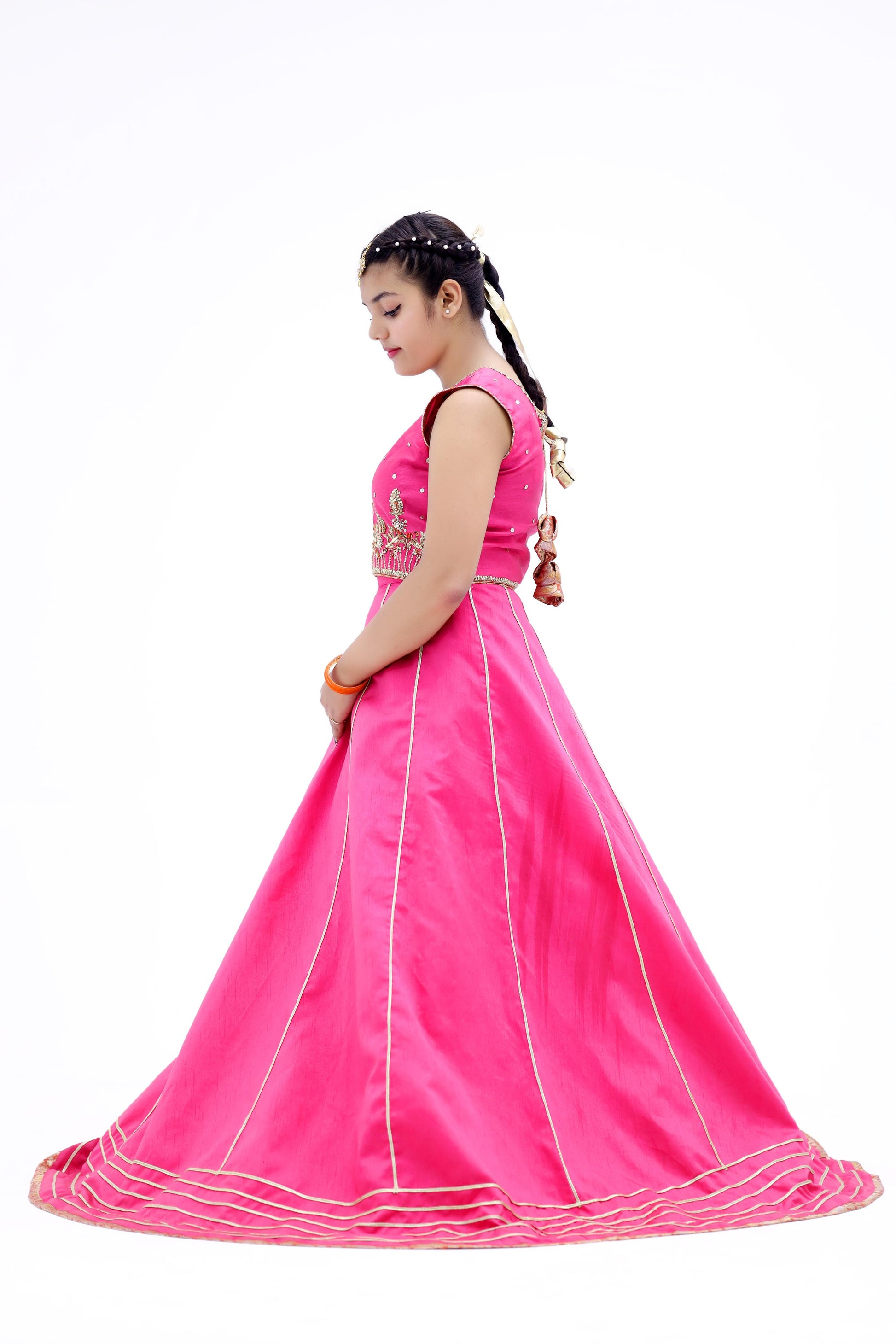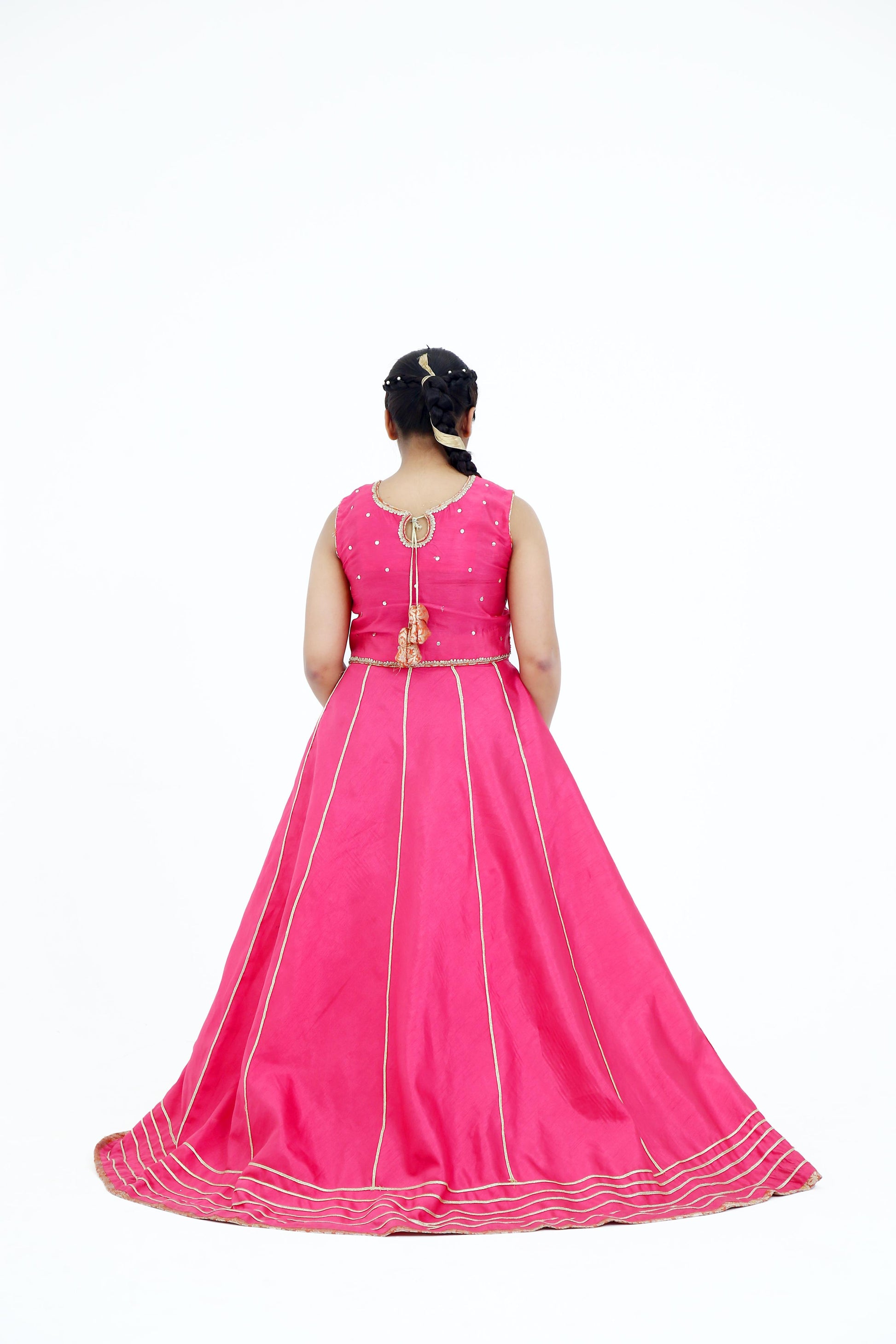 Experience traditional South Asian elegance with Gull Bahaar. Made with high-quality raw silk, each choli and lehnga is delicately handcrafted for a stunning fit and finish. The vibrant shocking pink color is sure to make a statement, while the sheer net dupatta adds a touch of femininity. 💃🏽👗🌺