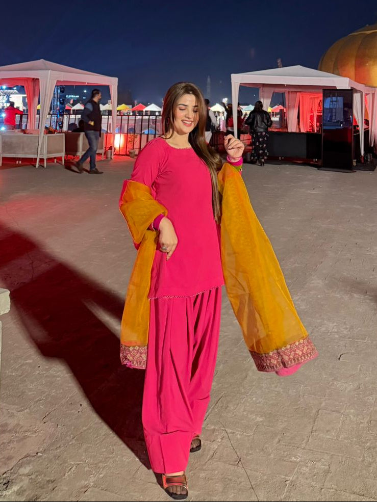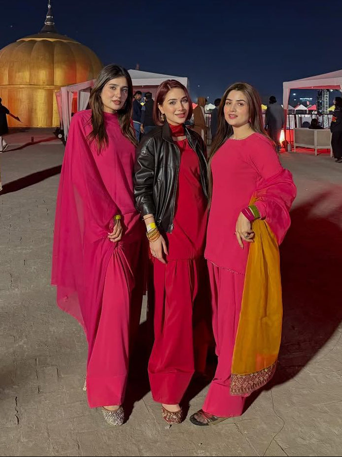 Introducing Noor, an elegant two-piece coord set designed for effortless sophistication. This stunning ensemble features a flowing farshi shalwar paired with a beautifully crafted shirt, creating a versatile look perfect for any occasion. Crafted from premium chiffon and georgette fabrics, the lightweight materials drape gracefully while ensuring all-day comfort. Available in sizes from extra small to extra large, Noor celebrates every silhouette with inclusive sizing. Whether you're attending a gathering or seeking everyday elegance, this coord set delivers timeless style at an exceptional value of PKR 6,500.