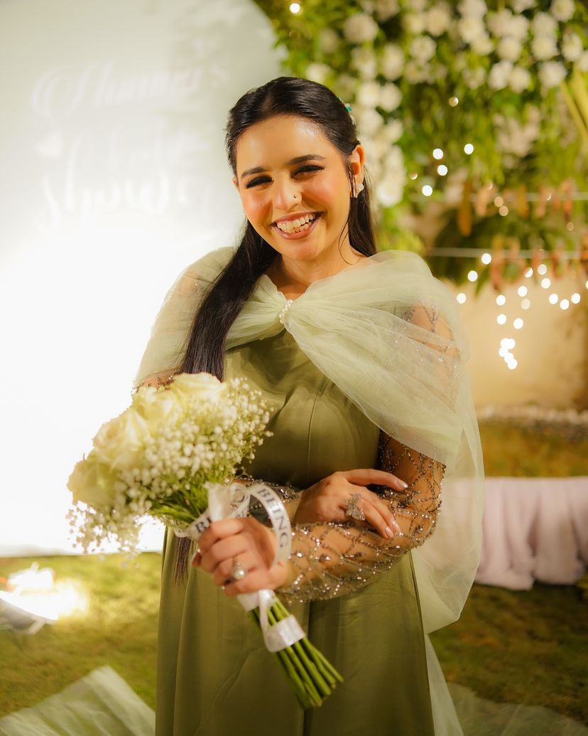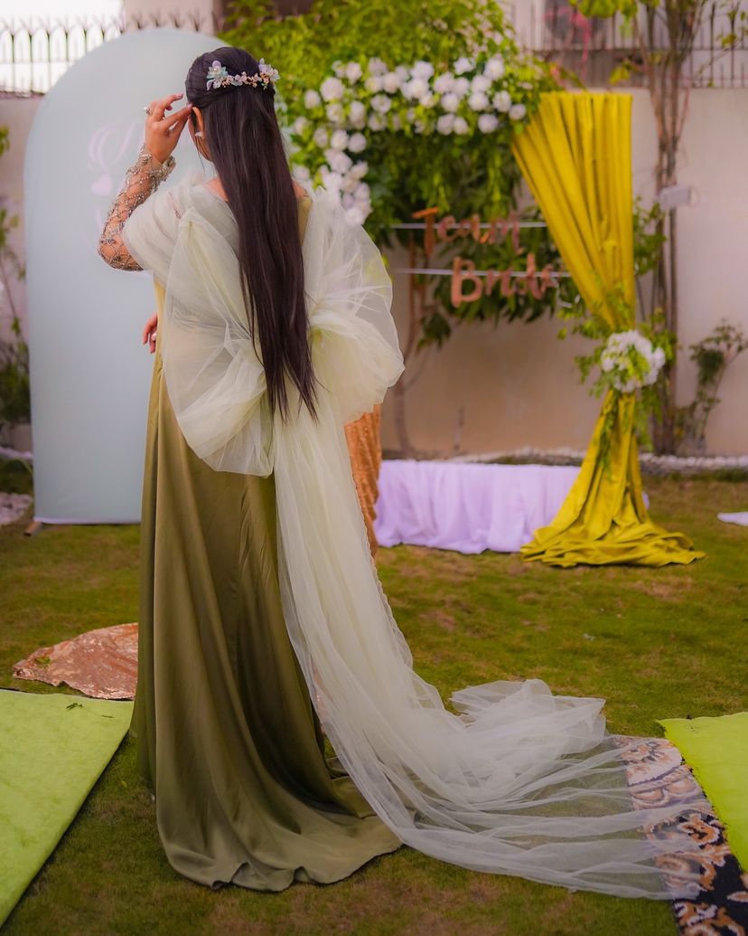 Experience luxury and elegance with Olivia - a stunning olive-green dress with a white cape. Made from pure satin silk and embellished net sleeves, this dress is perfect for any formal occasion. The intricate details and high-quality fabric make Olivia the ultimate statement piece.