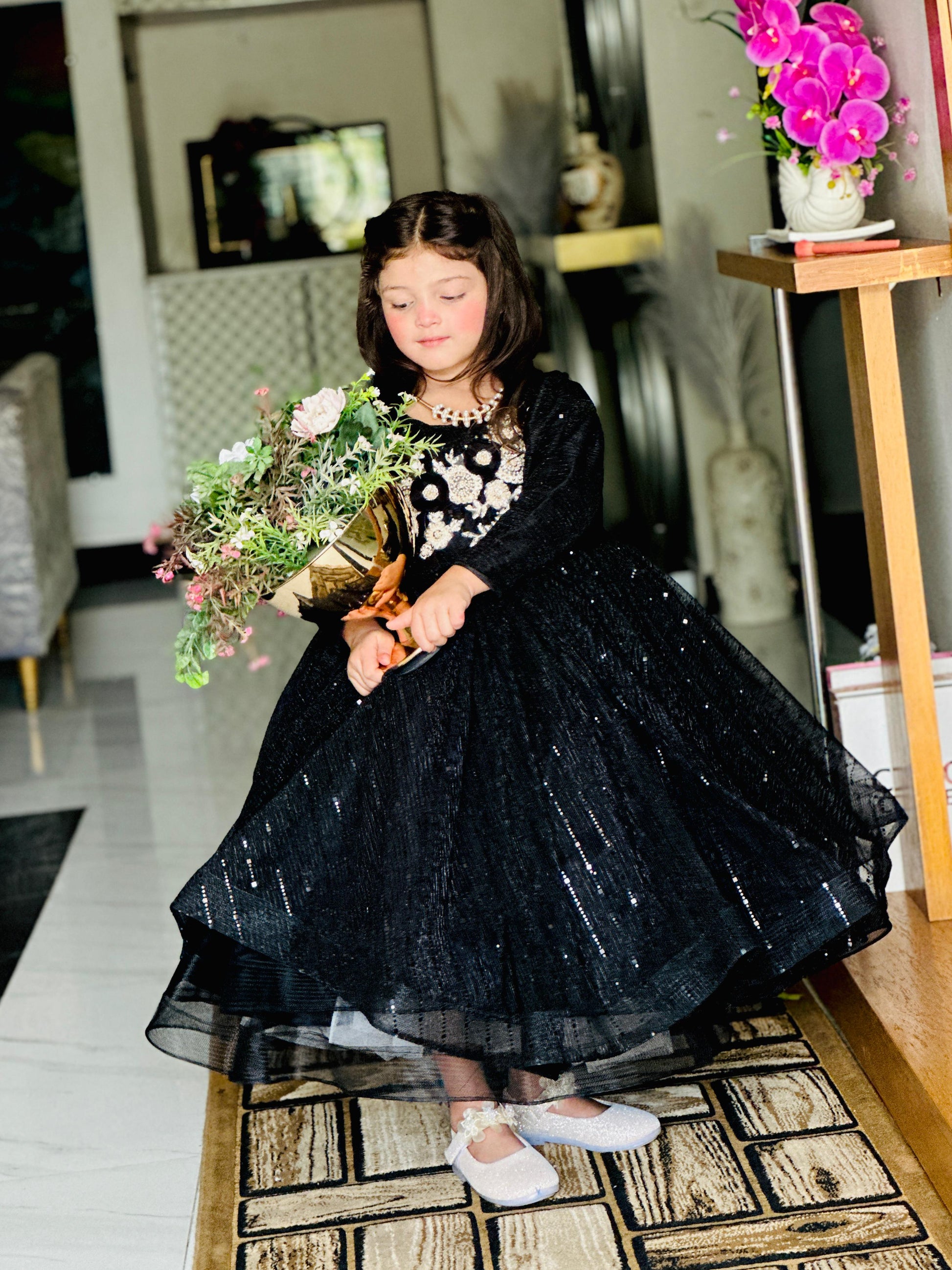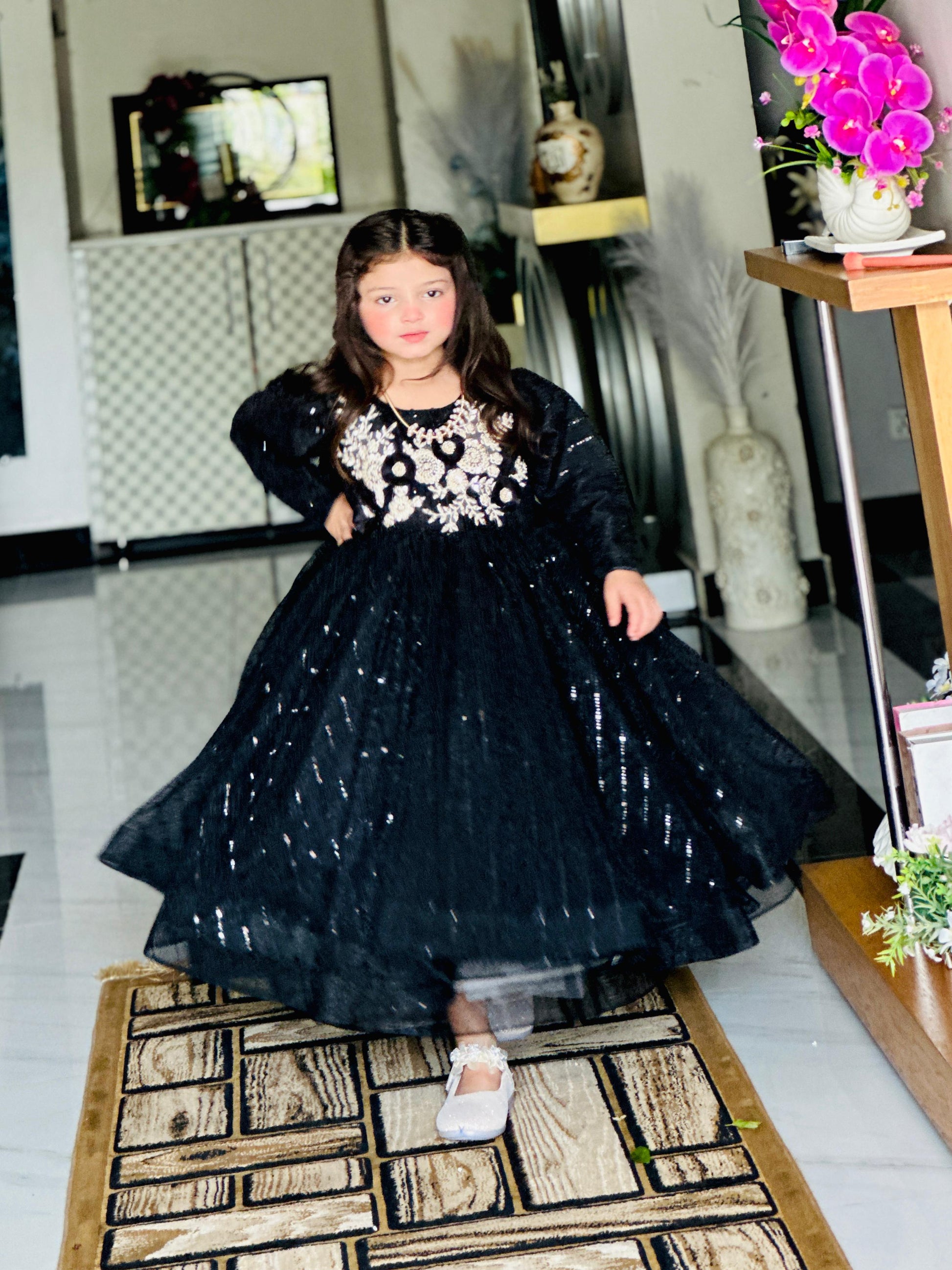 Introducing Onyx Gold - the latest in kids fashion. This unique blend of black and gold colors, combined with raw silk, will elevate your child's style game. Perfect for special occasions or everyday wear, this dress is sure to make a statement. Adorned with a touch of elegance, it's a must-have for your little one's wardrobe. 👌✨