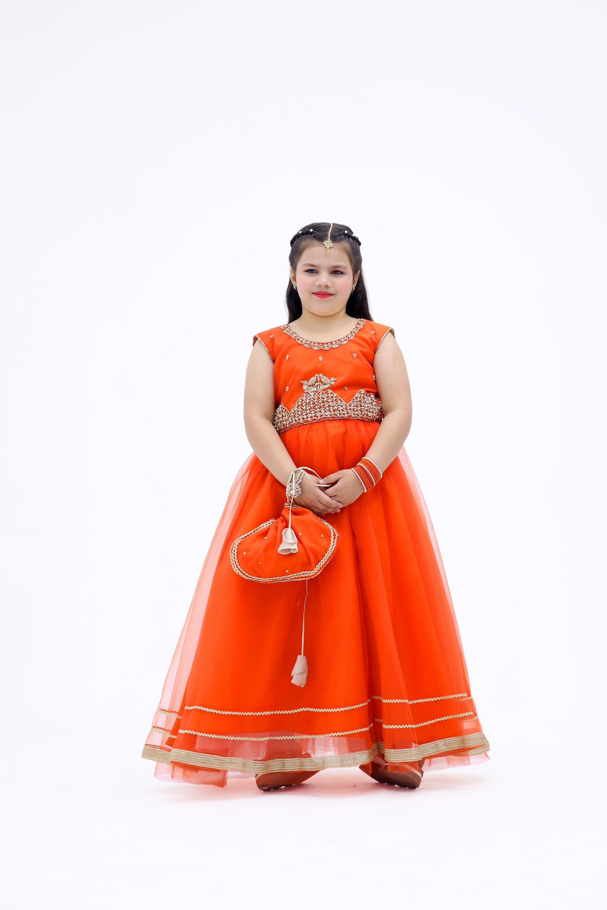 Reena is the perfect choice for those looking for a luxurious and stylish outfit. Made from high-quality silk and net fabrics, this stunning ensemble features vibrant orange color and includes a choli, lehnga, and dupatta. 💃💫 Elevate your look with Reena and make a statement on any occasion! #Luxurious #Stylish #HighQuality #Vibrant #StatementPiece