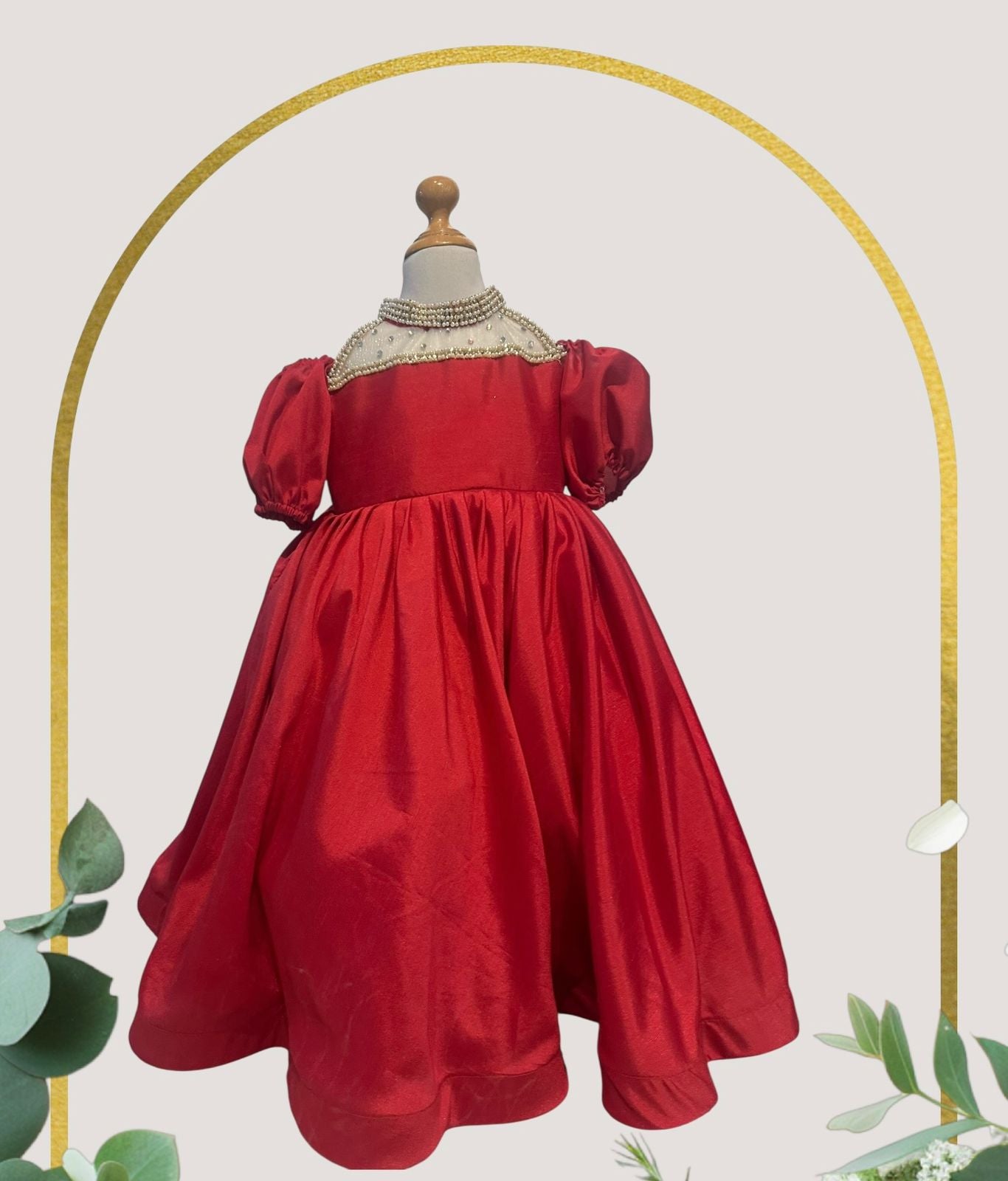 Experience the elegance of the Rosy from our Kids Collection, crafted from imported silk for a luxurious feel. Its rich red mehroon hue adds a vibrant yet sophisticated touch, perfect for special occasions. Designed with expert craftsmanship, this piece ensures comfort and style for your little one.