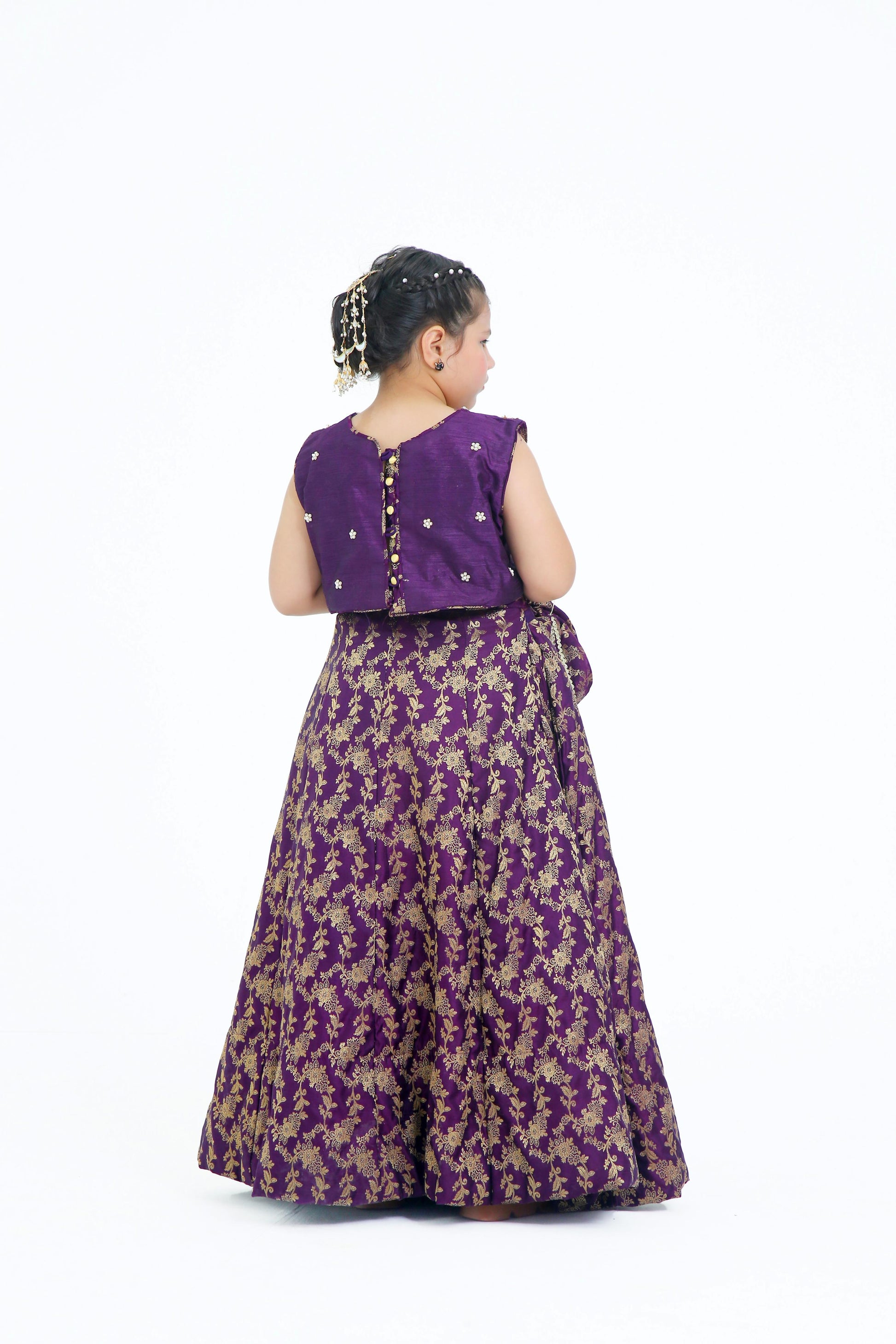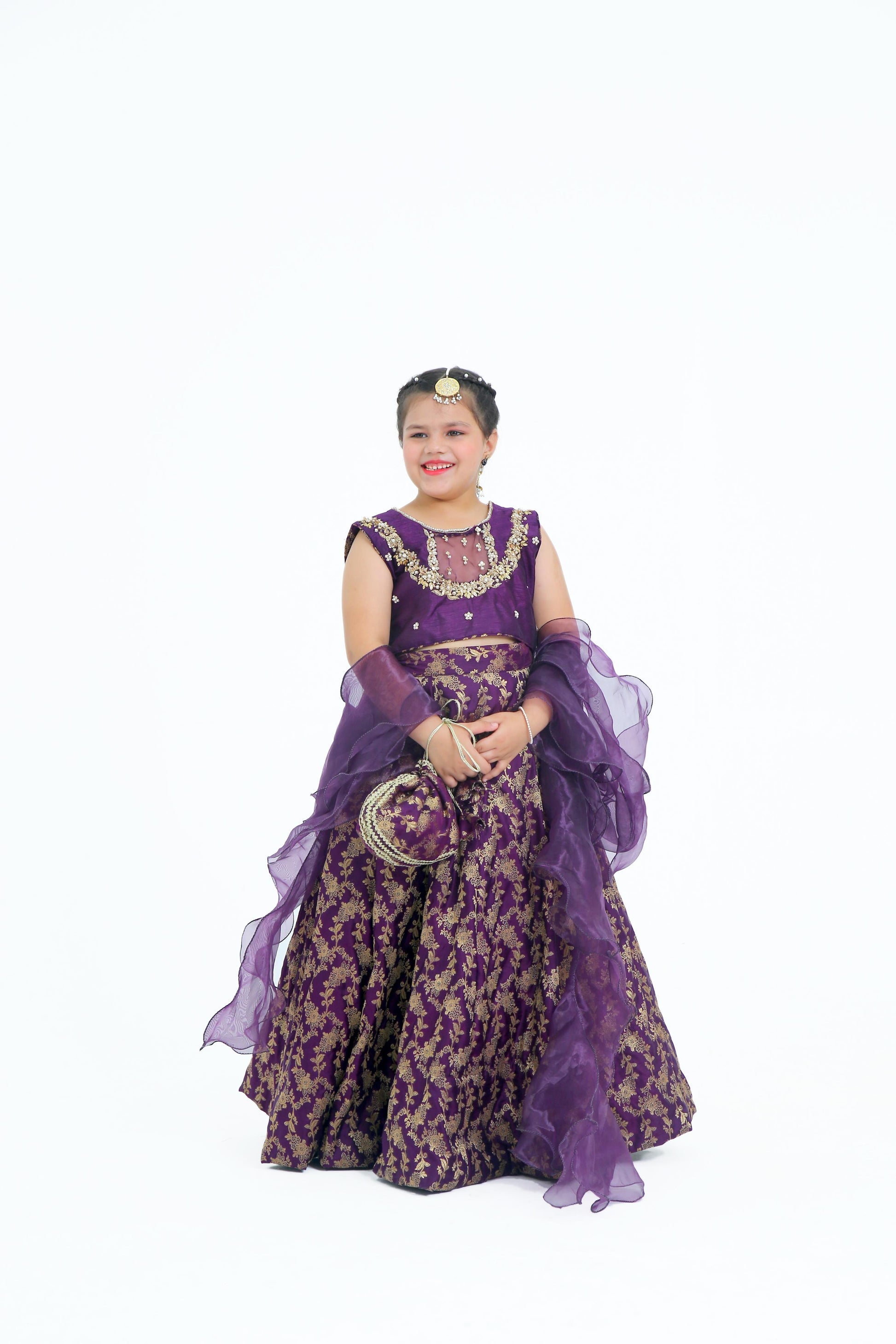 Expertly crafted from luxurious Jamawer,  Raw Silk and Organza, the Zainab is the epitome of elegance. The Purple Choli and Lehnga pair perfectly with the delicate Organza Dupatta, creating a stunning silhouette. Elevate your style with this exquisite ensemble. 🌟💜